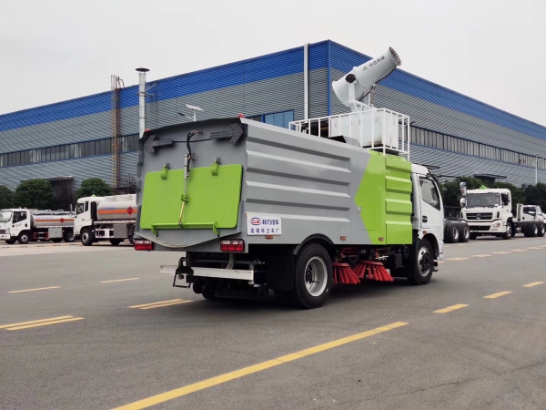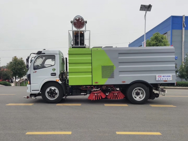 1.采用吸掃混合的方式收集垃圾,濕式除塵、電液,液壓傾翻卸料的作業(yè)方式對(duì)路面進(jìn)行清掃作業(yè)。