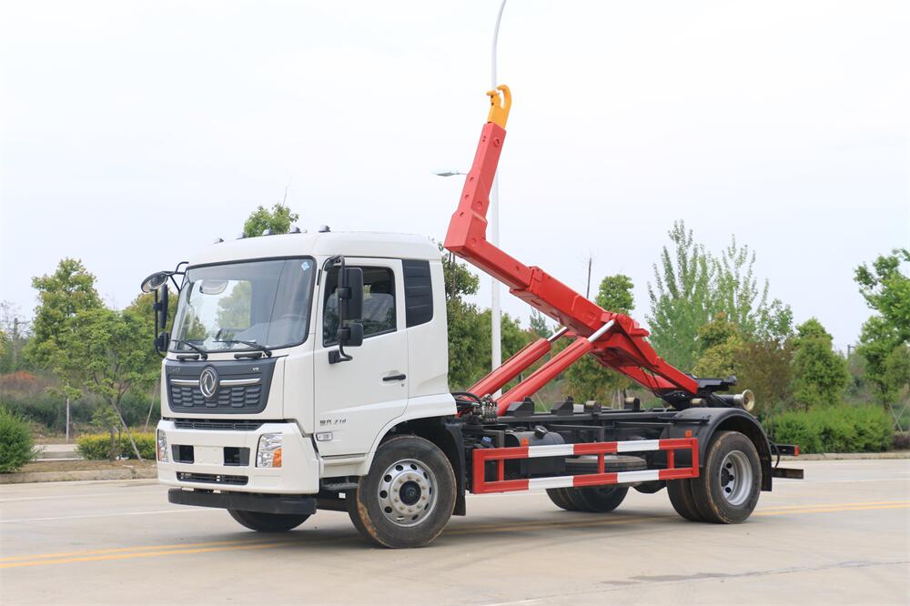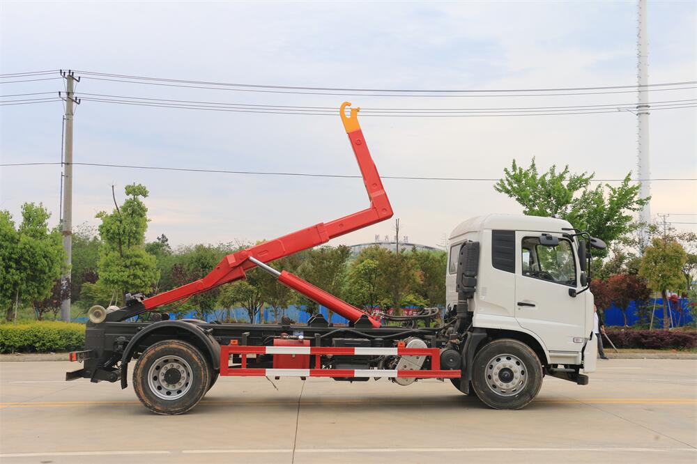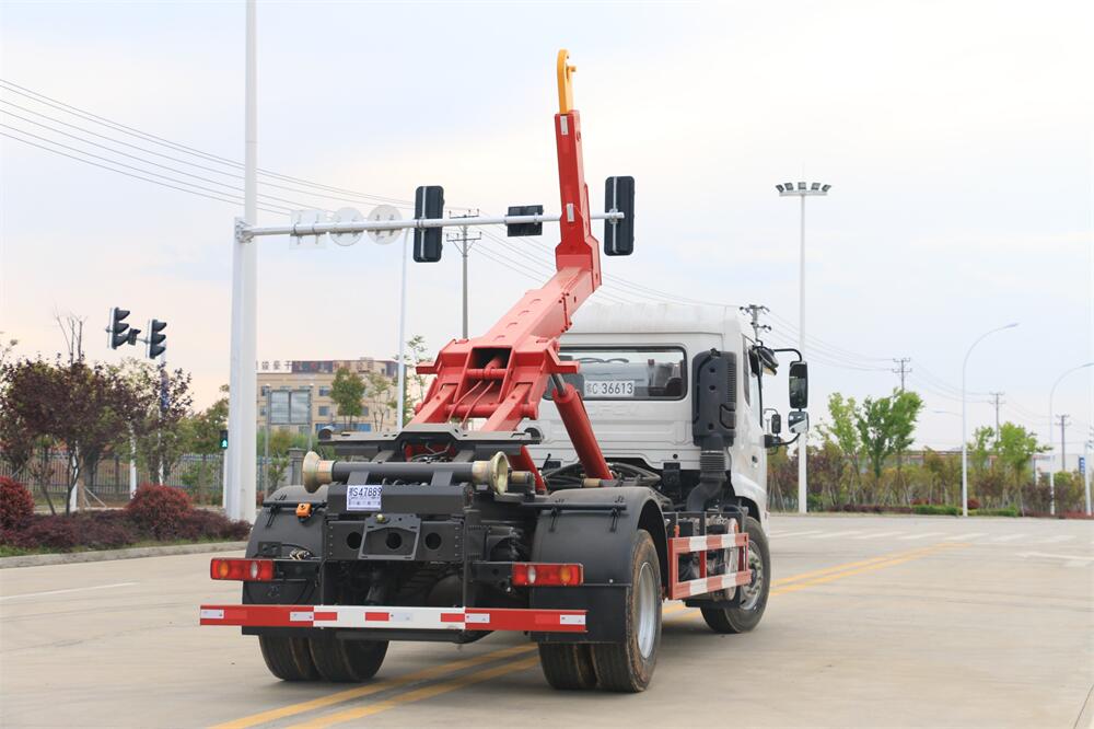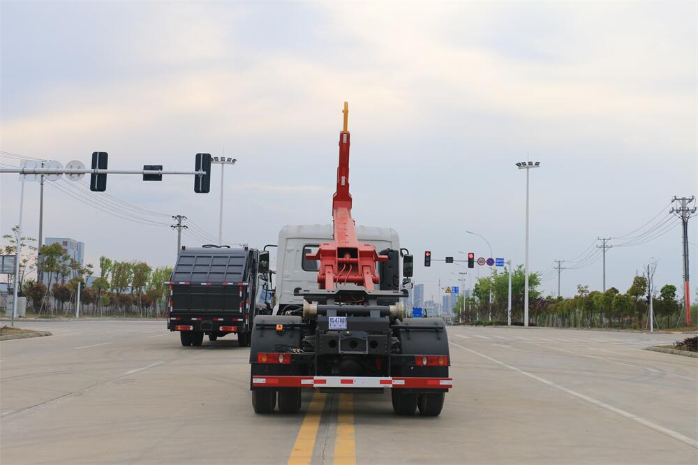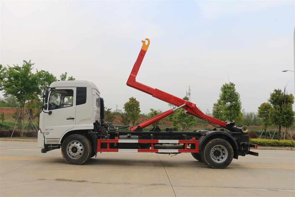 勾臂式垃圾車(車廂可卸式垃圾車)介紹: 車廂可卸式垃圾車又叫拉臂式垃圾車,是一種采用高新設(shè)計(jì)可伸縮的鉤臂,實(shí)現(xiàn)垃圾廂的二次吊裝,自吊上放下,可自行傾倒垃圾的環(huán)衛(wèi)設(shè)備。 拉臂式垃圾車結(jié)構(gòu)簡(jiǎn)單,操作穩(wěn)定方便,裝卸效率高,機(jī)械化程度高,節(jié)省人力。鉤臂垃圾車一車可帶多個(gè)垃圾廂,在裝卸的運(yùn)輸過(guò)程中可有效地避免二次污染。 拉臂垃圾車采用高新設(shè)計(jì)可擺動(dòng)的鉤臂,垃圾箱由框架、開啟油缸、滑輪、后門和若干加強(qiáng)框架與鋼板焊接而成。調(diào)換貨廂快捷方便,貨廂上帶蓋(倒垃圾時(shí)可翻開),鉤臂垃圾車?yán)鴰w可選用碳鋼、不銹鋼材質(zhì)、內(nèi)部采取環(huán)氧樹脂防腐處理,改裝部分與原車底盤為可分離式,維修方便且保持了原車的機(jī)動(dòng)性及行駛性能。