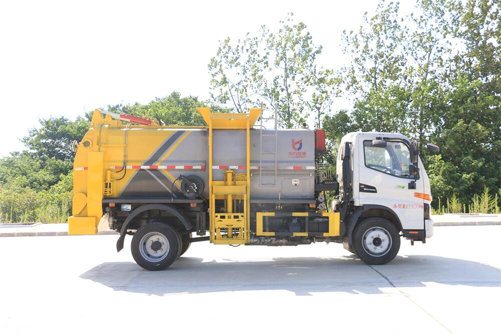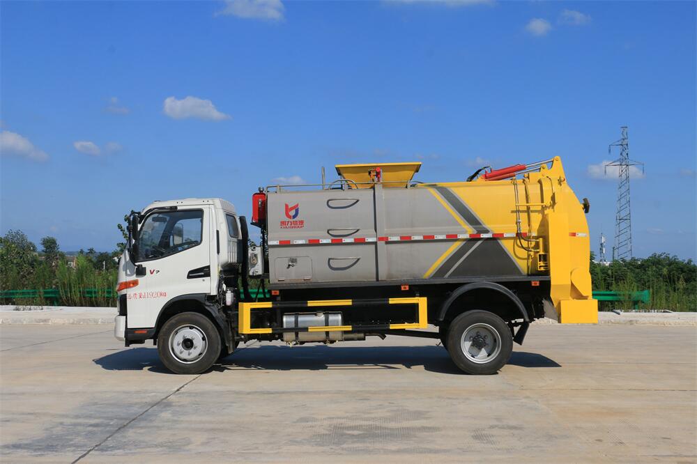 上裝配置:罐體容積8m3,配備120L/240L掛桶提升翻轉機構,液壓系統,后蓋液壓鎖緊開啟,罐體可以舉升自卸,尾部帶自流閥;用于運輸液態垃圾,其特點操作簡單,密封性好,無泄漏,無異味;可選裝固液分離功能,推板擠壓功能,常用于餐館的垃圾轉運處理。