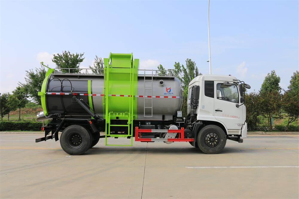 上裝配置:罐體容積12m3,配備120L/240L掛桶提升翻轉(zhuǎn)機(jī)構(gòu),液壓系統(tǒng),后蓋液壓鎖緊開啟,罐體可以舉升自卸,尾部帶自流閥;用于運(yùn)輸液態(tài)垃圾,其特點(diǎn)操作簡單,密封性好,無泄漏,無異味;可選裝固液分離功能,推板擠壓功能,常用于餐館的垃圾轉(zhuǎn)運(yùn)處理。