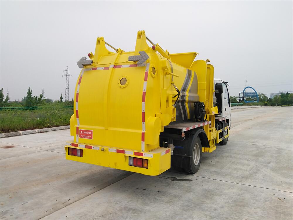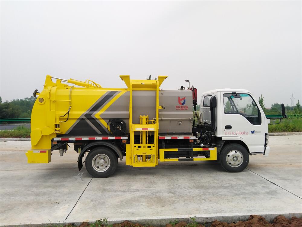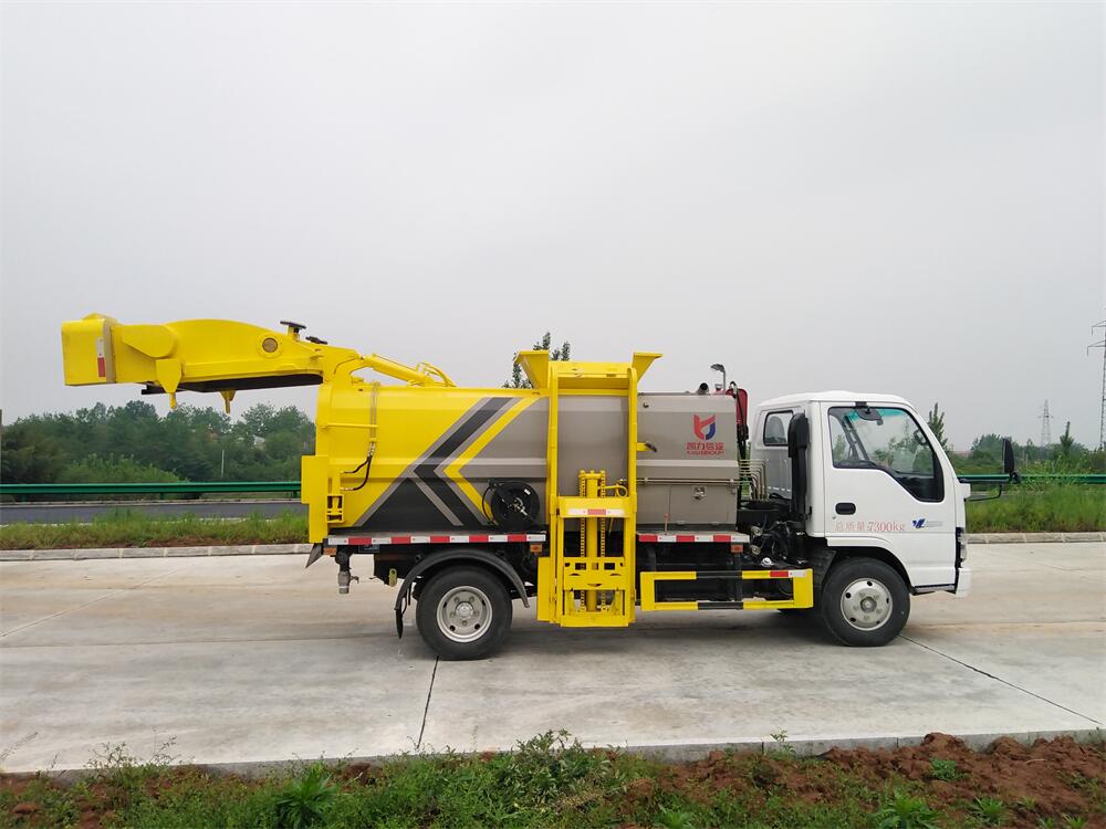 上裝配置:罐體容積6m3,配備120L/240L掛桶提升翻轉機構,液壓系統,后蓋液壓鎖緊開啟,罐體可以舉升自卸,尾部帶自流閥;用于運輸液態垃圾,其特點操作簡單,密封性好,無泄漏,無異味;可選裝固液分離功能,推板擠壓功能,常用于餐館的垃圾轉運處理。
