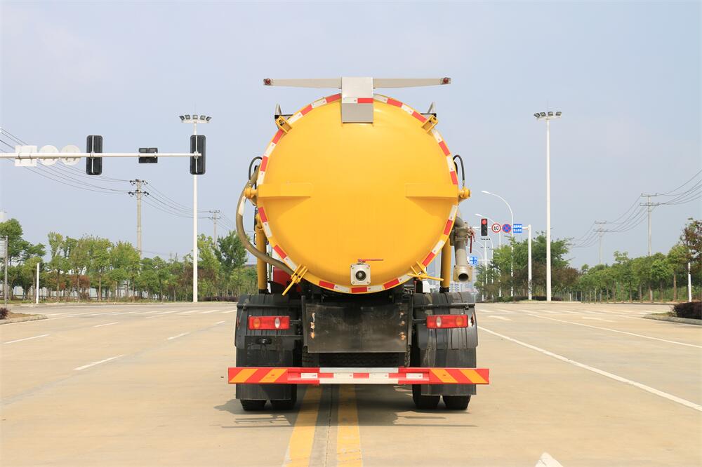 5.液壓舉升自卸功能,便于將各種污物傾倒干凈,后罐門可以液壓啟動開啟,便于清理罐體內(nèi)的沉積物,凝固物及對罐體內(nèi)部進行維修、保養(yǎng),液壓取力增強了系統(tǒng)的穩(wěn)定性。