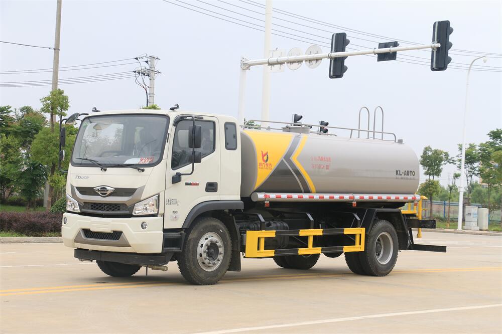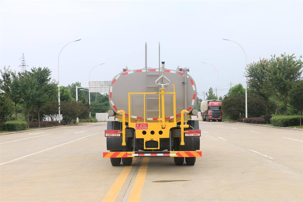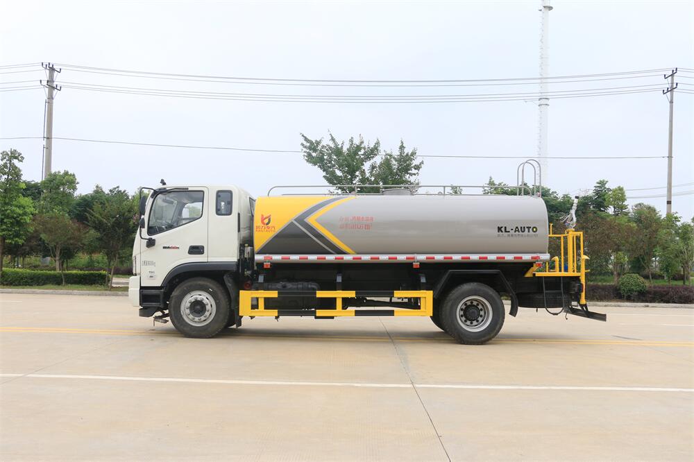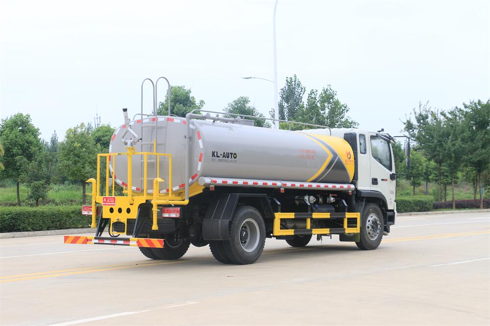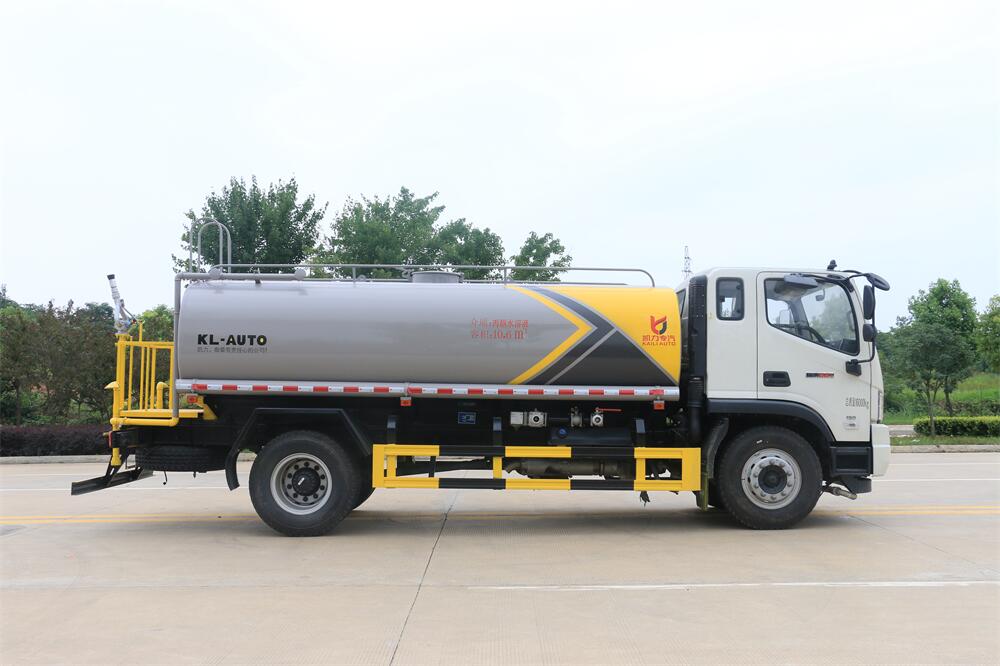 灑水車前裝有鴨形噴嘴或圓頭沖嘴,后面裝有圓柱開灑水噴嘴或蓮蓬頭噴嘴,后部有一工作平臺,裝配有水炮。后部還可裝8個噴嘴(選裝)。