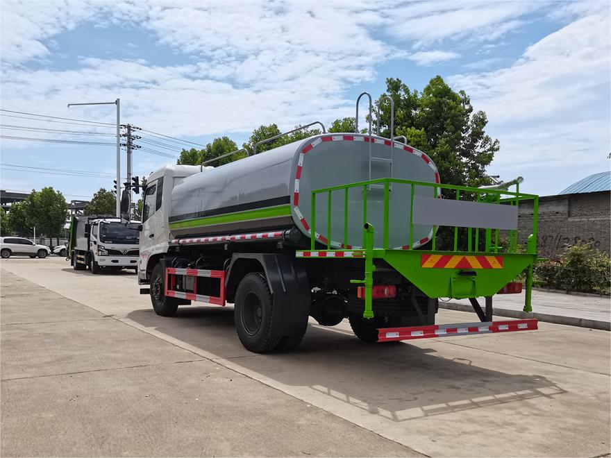 灑水車前裝有鴨形噴嘴或圓頭沖嘴,后面裝有圓柱開灑水噴嘴或蓮蓬頭噴嘴,后部有一工作平臺,裝配有水炮。后部還可裝8個噴嘴(選裝)。