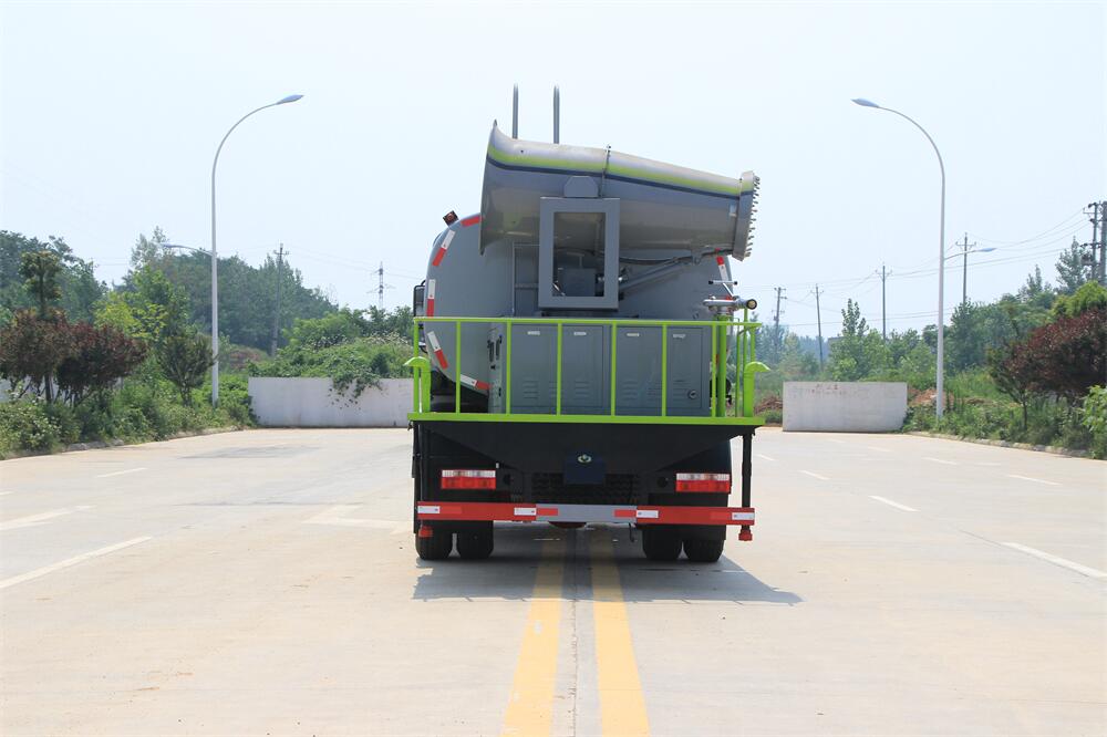 上裝配置:罐體容積為 12立方,選配風送式霧炮機組射程30米、40米、50米、60米、80米、100米、120米霧炮,罐體鋼板為4mm碳鋼Q235材質,罐內隔板具有防波作用,以減輕汽車行駛時罐體液體沖擊,罐體及整車外形尺寸按照公告。帶大功率專用灑水泵,泵可自吸自排,整車前沖、后灑、側噴、帶65消防接口,后平臺配CLW-50、CLW-60、CLW-80、CLW-100、CLW-120型風送式霧炮機組;罐體前封頭配大功率柴油發電機組;前封頭帶水位計,后平臺主管路帶1寸澆花接口,后爬梯。帶兩根輸水管及陰陽端。罐體顏色:銀/灰/綠,罐體兩側噴“多功能抑塵車”字樣,貼反光標示。