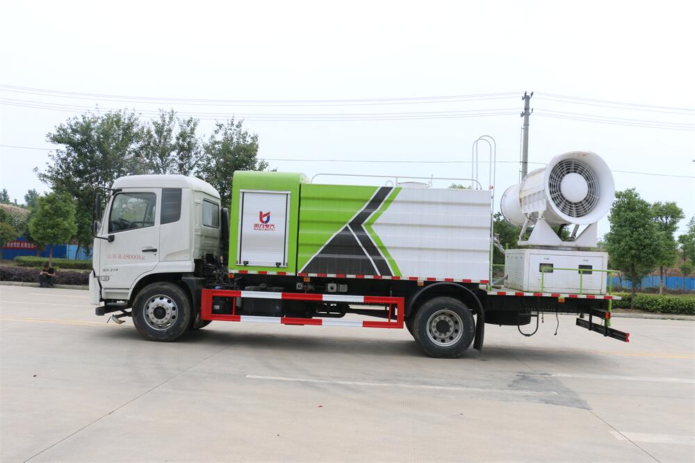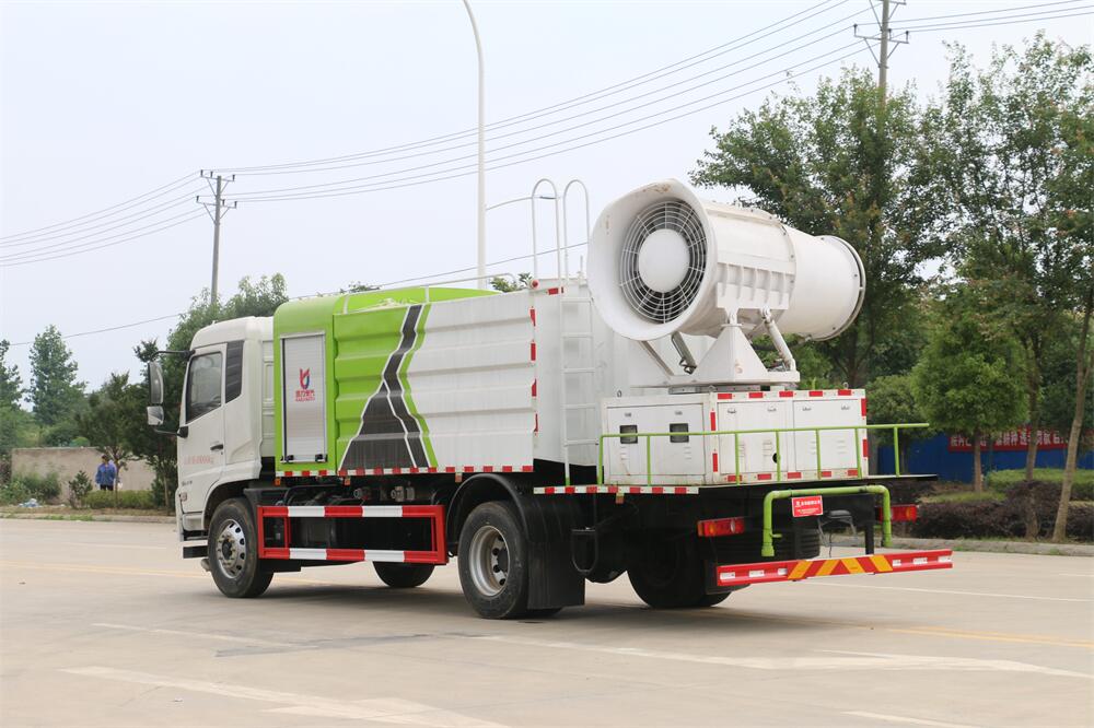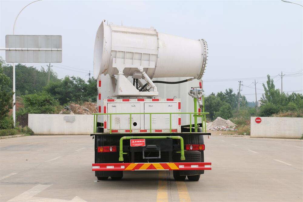 上裝配置:罐體容積為 12立方,選配風(fēng)送式霧炮機(jī)組射程30米、40米、50米、60米、80米、100米、120米霧炮,罐體鋼板為4mm碳鋼Q235材質(zhì),罐內(nèi)隔板具有防波作用,以減輕汽車(chē)行駛時(shí)罐體液體沖擊,罐體及整車(chē)外形尺寸按照公告。帶大功率專用灑水泵,泵可自吸自排,整車(chē)前沖、后灑、側(cè)噴、帶65消防接口,后平臺(tái)配CLW-50、CLW-60、CLW-80、CLW-100、CLW-120型風(fēng)送式霧炮機(jī)組;罐體前封頭配大功率柴油發(fā)電機(jī)組;前封頭帶水位計(jì),后平臺(tái)主管路帶1寸澆花接口,后爬梯。帶兩根輸水管及陰陽(yáng)端。罐體顏色:銀/灰/綠,罐體兩側(cè)噴“多功能抑塵車(chē)”字樣,貼反光標(biāo)示。