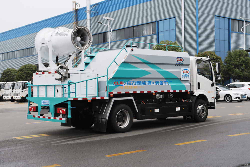 上裝配置:罐體容積為 16立方,選配風(fēng)送式霧炮機(jī)組射程30米、40米、50米、60米、80米、100米、120米霧炮,罐體鋼板為4mm碳鋼Q235材質(zhì),罐內(nèi)隔板具有防波作用,以減輕汽車行駛時(shí)罐體液體沖擊,罐體及整車外形尺寸按照公告。帶大功率專用灑水泵,泵可自吸自排,整車前沖、后灑、側(cè)噴、帶65消防接口,后平臺(tái)配CLW-50、CLW-60、CLW-80、CLW-100、CLW-120型風(fēng)送式霧炮機(jī)組;罐體前封頭配大功率柴油發(fā)電機(jī)組;前封頭帶水位計(jì),后平臺(tái)主管路帶1寸澆花接口,后爬梯。帶兩根輸水管及陰陽(yáng)端。罐體顏色:銀/灰/綠,罐體兩側(cè)噴“多功能抑塵車”字樣,貼反光標(biāo)示。
