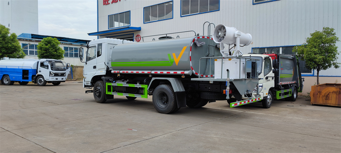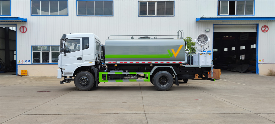 上裝配置:罐體容積 12立方,風送式霧炮機組30米,40米選擇,罐體采用國標Q235碳鋼材質,罐體厚度4MM,前后封頭5MM加厚型,罐體內雙層隔板具有防波蕩作用,以減輕汽車行駛時罐內液體沖擊;灑水車整車及外形尺寸嚴格按照**機動車公告制作而成;裝配大功率專用灑水泵,前沖、后灑、側噴、后平臺帶綠化灑水炮,灑水炮可全方位旋轉,可連續調成直沖狀、大雨、小雨、毛毛雨;配消防接口,自流閥,濾網,帶自吸自排功能。前封頭帶水位計,后平臺主管路帶1寸澆花接口,后爬梯,帶1個消防接頭,帶1個自流閥,1個過濾裝置,其余標配。