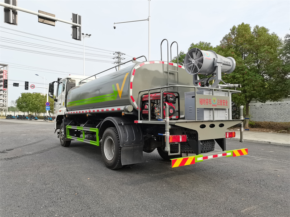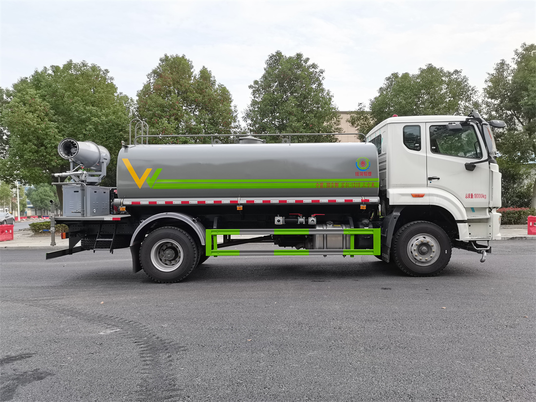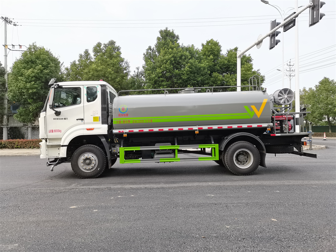 主要由發動機帶動變速箱,變速箱上安裝的取力器帶動灑水泵,灑水泵產生動力,將罐體內部的液體通過管網噴灑出去。工作范圍:自吸高度:≥7m,灑水寬度:≥14m,**大射程:≥28m;可調節成柱狀,射程≥28m;也可調節成霧狀,射程≥5m。