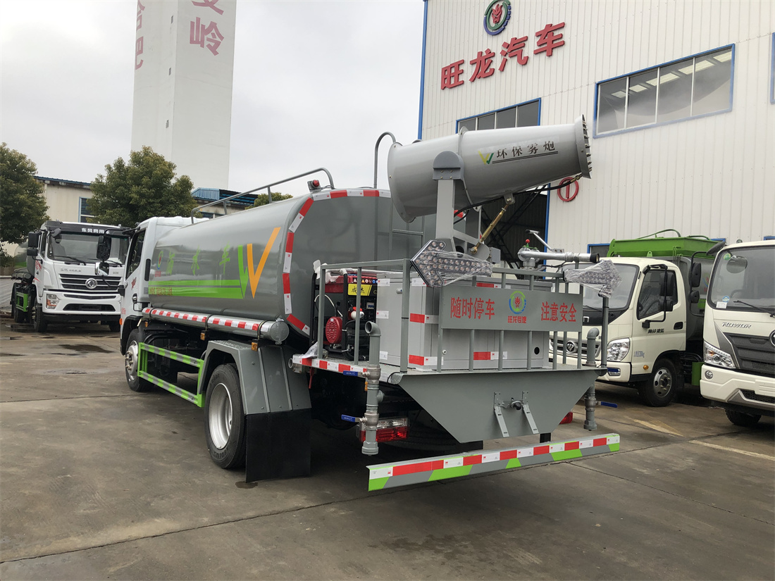 主要由發動機帶動變速箱,變速箱上安裝的取力器帶動灑水泵,灑水泵產生動力,將罐體內部的液體通過管網噴灑出去。工作范圍:自吸高度:≥7m,灑水寬度:≥14m,**大射程:≥28m;可調節成柱狀,射程≥28m;也可調節成霧狀,射程≥5m。