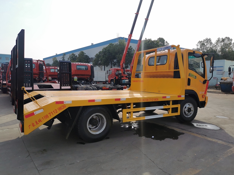 上裝采用五毫米花紋鋼板,100*100方鋼做橫梁,電動卷揚,簡易爬梯,可拉8噸以下挖機。