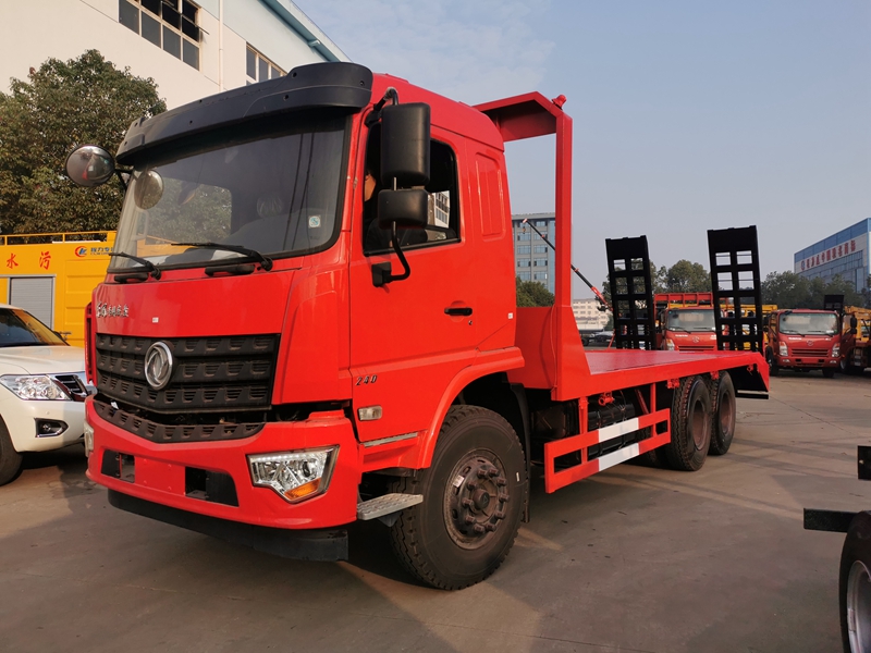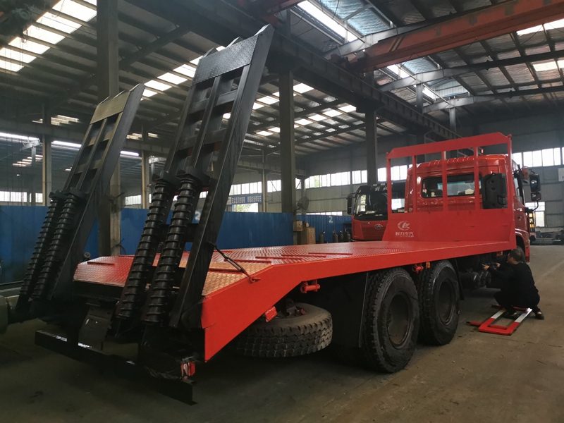上裝采用八毫米花紋鋼板,120套100方管做橫梁,加強雙簧爬梯,可拉25噸-30噸以下挖機。