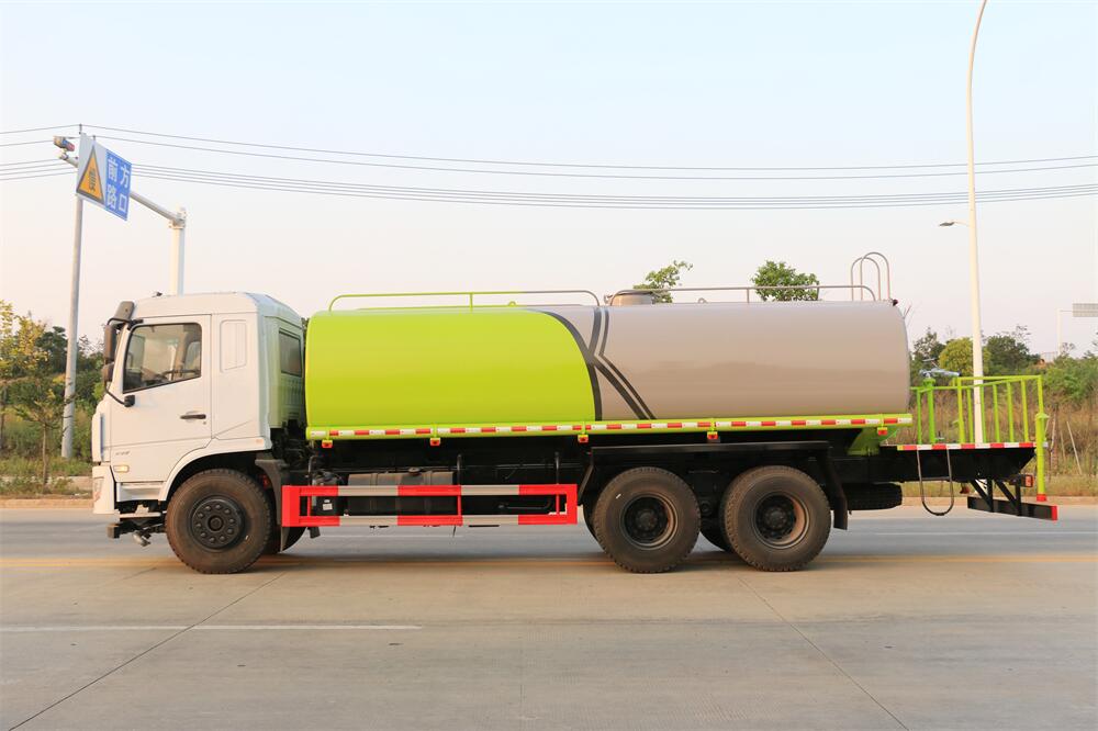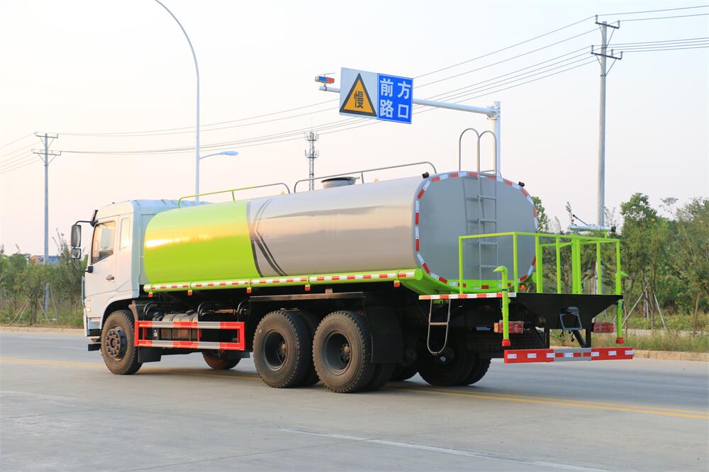 灑水車前裝有鴨形噴嘴或圓頭沖嘴,后面裝有圓柱開灑水噴嘴或蓮蓬頭噴嘴,后部有一工作平臺,裝配有水炮。后部還可裝8個噴嘴(選裝)。